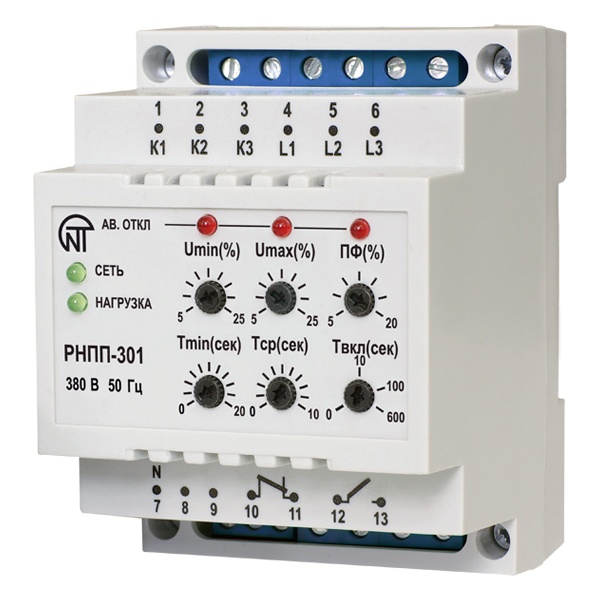 Реле напряжения РНПП-301 используется для защиты трехфазных потребителей от основных видов аварией в электрической сети, таких как: