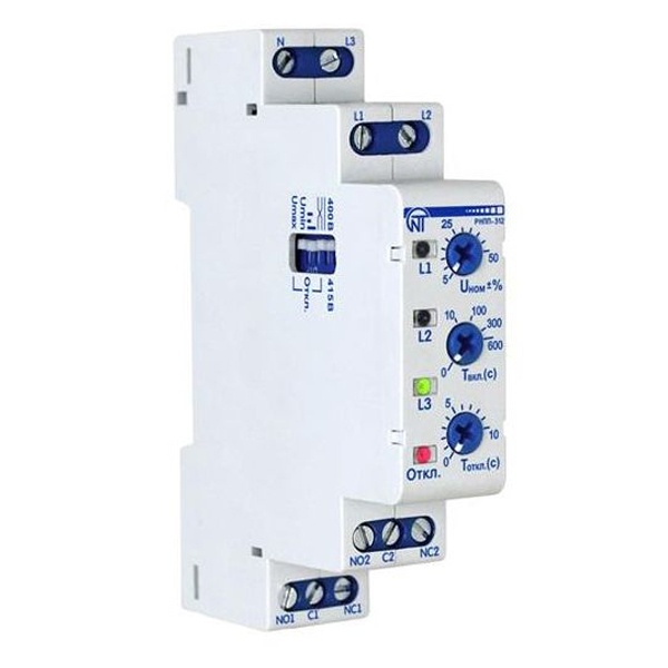 Отслеживает действующее значение напряжения. Защищает трехфазное электрооборудование от аварий: