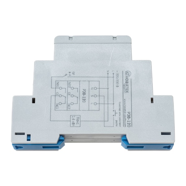 Прибор монтируется на стандартную дин рейку и занимает всего один модуль в щите. Прибор имеет два выходных канала с нормально открытыми и нормально закрытыми контактами. Так же на лицевой части прибора находятся: регулятор установки временного интервала, регулятор установки времени, регулятор установки режима работы.