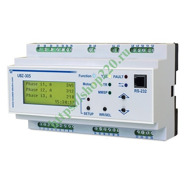 УБЗ обеспечивает постоянный контроль параметров сетевого напряжения, действующих значений фазных (линейных) токов трехфазного электрооборудования 380 В 50 Гц и проверку значения сопротивления изоляции электродвигателей.