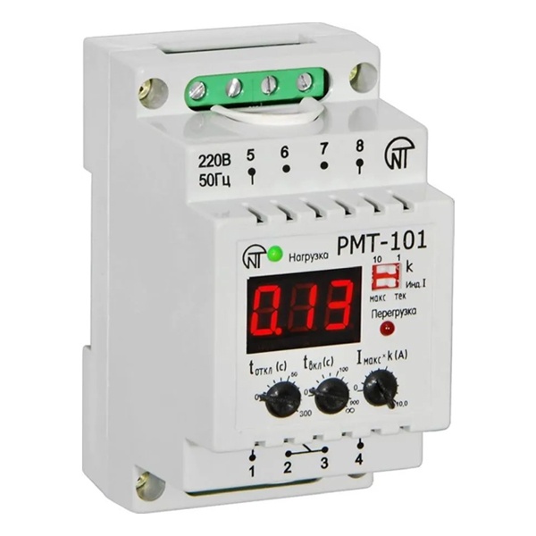 - Задержку времени включения нагрузки после снижения тока до уровня допустимого