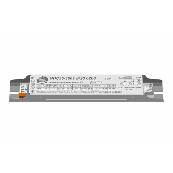 Источник питания светодиодов Аргос-Трейд (Argos-Trade) для светодиодных светильников внутреннего освещения мощностью 35 Ватт 35-350Т ОФИС 0213