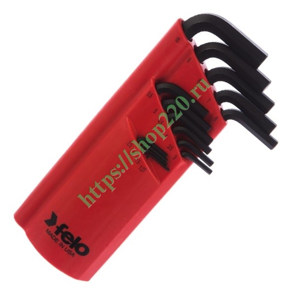 Комплект метрических Г-образных шестигранных ключей с шаровым наконечником от компании Фело. Размеры ключей: 1,27; 1,5; 2,0; 2,5; 3,0; 3,5; 4,0; 4,5; 5,0; 5,5; 6,0; 7,0; 8,0; 9,0; 10,0 мм