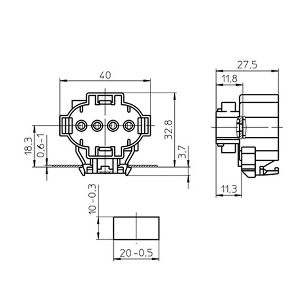 Патрон 2G7 для компактных люминесцентных ламп с защелкой 10х20 мм. 500574.01