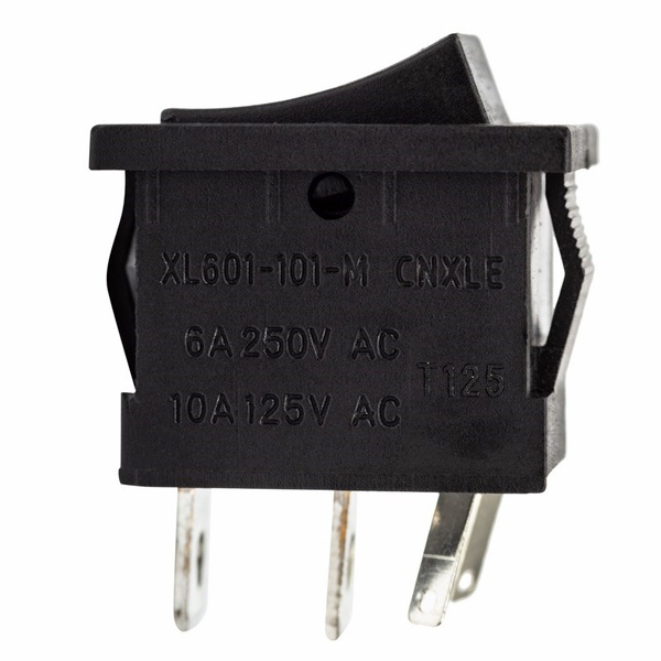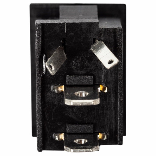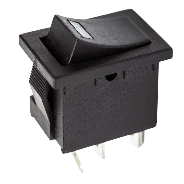 Устройство коммутации от компании Rexant представляет собой компактный клавишный выключатель типа Mini на 2 положения с фиксацией: On/Off. С помощью него осуществляется коммутация однополюсной линией в электрической цепи с напряжением до 12 Вольт. Выключатель применяется в качестве комплектующего изделия различного электрооборудования в быту и на производстве, например, в аудио-оборудовании, автомобилях и т.п. Эта модель в черном цвете сделана из пластика и имеет клавишу прямоугольной формы, которая обладает световой индикацией коммутационного положения. Номинальная нагрузка тока для модели составляет 15 Ампер. Монтаж производится простым защелкиванием без применения дополнительных инструментов на плоских панелях толщиной от 0.8 до 3 мм. Количество контактных групп – 1, количество контактов в контактной группе – 3. Подключение контактов осуществляется плоской клеммой 6.6 мм, либо с помощью пайки. Механическая износостойкость переключателя составляет 10 000 циклов. Рабочая температура эксплуатации находится в диапазоне от -25 до +85 градусов Цельсия.
