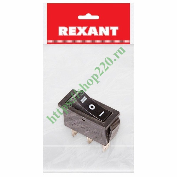 Черный рокерный переключатель Рексант на 3 положения в индивидуальной упаковке 36-2220-1
