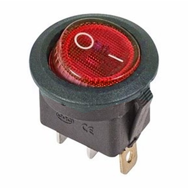 Выключатель клавишный круглый 250В 3А (3с) ON-OFF красн. с подсветкой Micro (RWB-106 SC-214) (инд. упак.) Rexant 36-2530-1