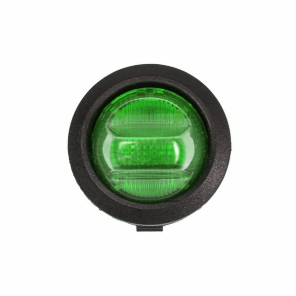 Выключатель клавишный круглый 12V 16А (3с) ON-OFF зеленый с подсветкой REXANT