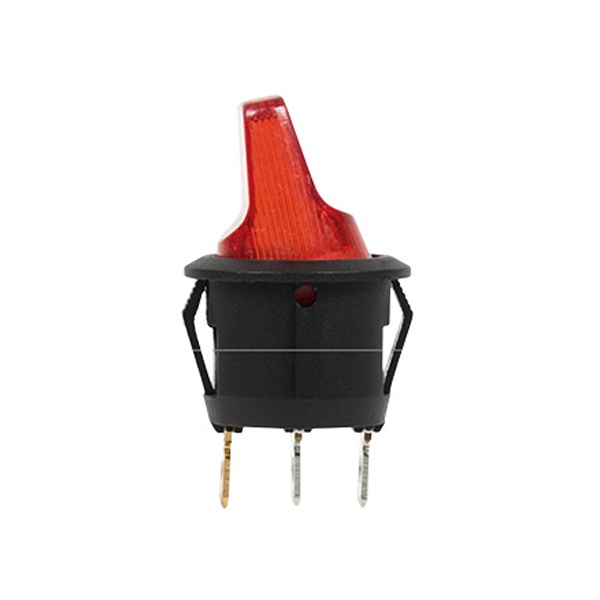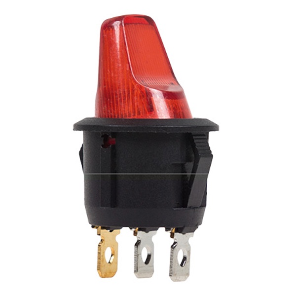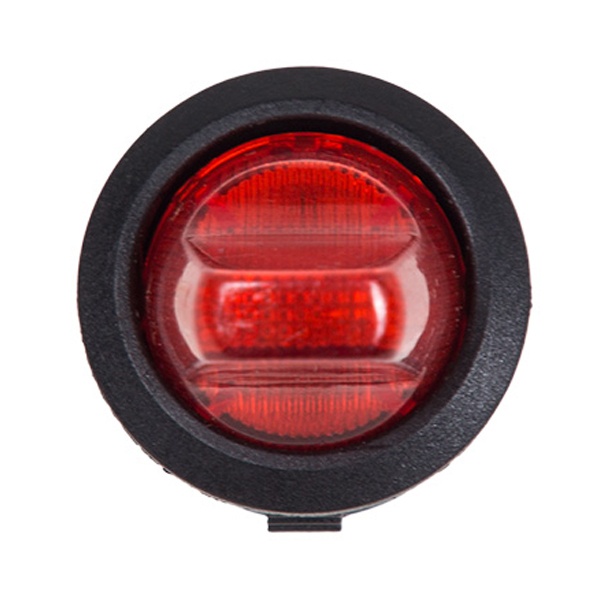 Красный тумблерный выключатель Рексант круглой формы с индикацией для электроборудования на 2 положения, три контакта на 6 Ампер 36-2600