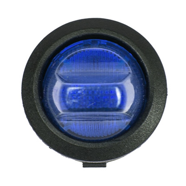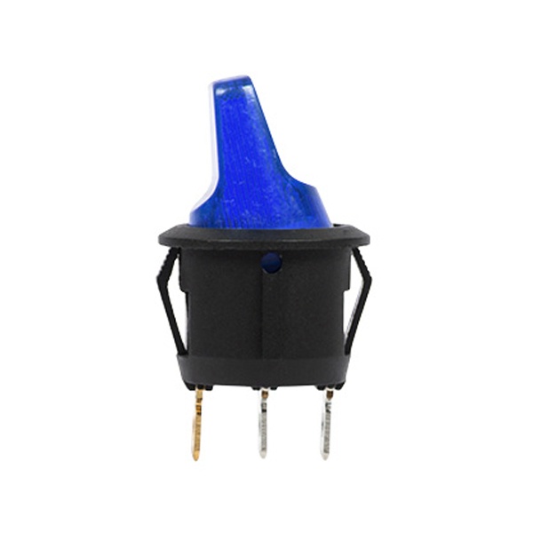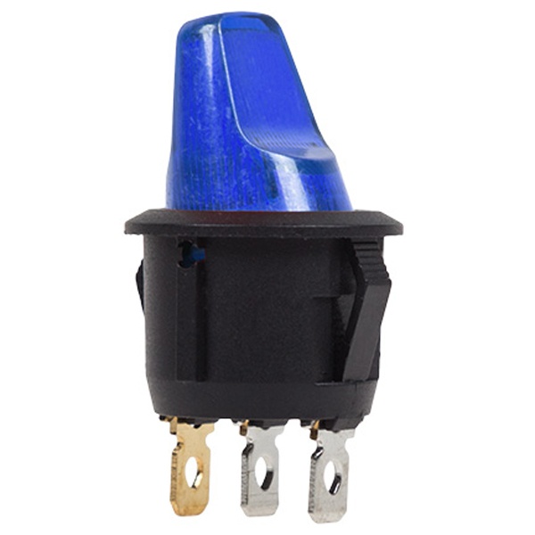 Синий тумблерный выключатель Рексант круглой формы для электрооборудования на 2 положения с индикацией, 3 контакта на 6 Ампер 36-2601