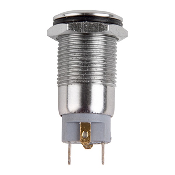 Антивандальный выключатель-кнопка – это коммутационный прибор, который предназначен для управления электрическими цепями напряжением до 12 Вольт. Его главными особенностями выступают металлическое исполнение и неуязвимость контактной группы. Данная модель торговой марки Rexant имеет 2 положения контактов: (On)/Off, и работает по принципу замыкания цепи непрерывным нажатием кнопки. В обычном состоянии контакты всегда разомкнуты. Нагрузка отключена. Номинальная токовая нагрузка для этой модели составляет 2 Ампера. Ее можно встретить на панелях управления различного низковольтного оборудования, которое используется в быту и на производстве в самых тяжелых условиях эксплуатации. Установочный диаметр составляет 12 мм. Внешне изделие в цвете хром обладает круглой формой, кнопка – выпуклая, имеет синюю индикацию положения. Монтаж осуществляется на плоских поверхностях от 0.5 до 3 мм. Количество контактов – 2, количество контактных групп – 1. Подключение проводников производится с помощью пайки. Рабочий ресурс достигает 10 000 циклов. Рабочая температура эксплуатации находится в диапазоне от -25 до +85 градусов Цельсия.