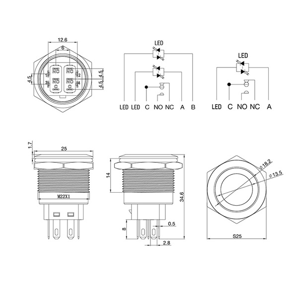 Антивандальная кнопка от компании Rexant представляет собой коммутационное устройство с повышенным классом защиты контактной группы, которое широко используется в быту и промышленности в условиях постоянной эксплуатации: в лифтах, на улице (в качестве кнопок вызова помощи) и т.п. С помощью него производится коммутация электрических цепей переменного тока напряжением до 250 Вольт путем замыкания-размыкания электроцепи. Данная модель имеет 2 положения: On/Off. При этом она рассчитана как на замыкание цепи без фиксации положения (On), так и на размыкание без фиксации позиции (Off). Внешне кнопочный выключатель заключен в металлический корпус круглой формы, который влагозащищен и устойчив к механическому износу. Он имеет выпуклую кнопку со световой индикацией зеленого цвета. Кнопку можно использовать как для наружной, так и внутренней установки. Номинальный ток для нее составляет 5 Ампер. Количество контактных групп – 2, количество контактов в контактной группе – 2. Подключение проводников производится путем клемм, а также пайки. Установочный диаметр равен 22 мм. Изделие вставляется в отверстие и закручивается гайкой с обратной стороны. Механическая износостойкость достигает 10 000 циклов.
