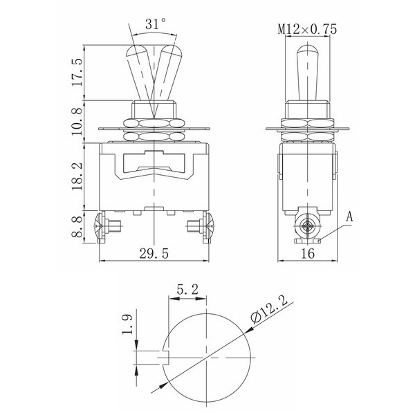 Устройство коммутации от компании Rexant представляет собой компактный тумблер на 2 положения с фиксацией: On-Off. С его помощью осуществляется соединение электрических цепей переменного тока напряжением до 250 Вольт. Номинальная токовая нагрузка для выключателя составляет 15 Ампер. Количество контактных групп – 1, количество контактов в контактной группе – 2, установочный диаметр – 12,2 мм. Такая разновидность однополюсного переключателя применяется на лицевых панелях в качестве комплектующих изделий различного электрооборудования. Тумблер замыкает или размыкает контакты тем самым коммутируя цепь. Монтаж устройства осуществляется без применения винтов на плоских панелях толщиной от 0,8 до 4 мм. Подключение контактов производится с помощью винтов. Данный переключатель устанавливается на различные технические устройства, требующие высокой надежности в работе. Его ресурс составляет 10 000 циклов. Рабочая температура: от -25 до +85 градусов Цельсия. Изделие имеет индивидуальную упаковку и поставляется в прозрачном пакете.