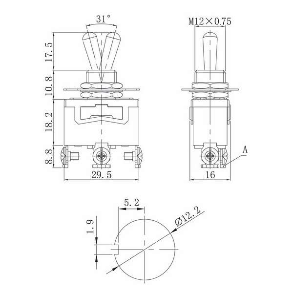 Устройство переключения от компании Rexant представляет собой тумблер на 3 положения с фиксацией и нулевой точкой: On-Off-On. С его помощью осуществляется коммутация электрических цепей переменного тока напряжением до 250 Вольт. Номинальная токовая нагрузка для переключателя составляет 15 Ампер. Количество контактных групп – 1, количество контактов в контактной группе – 3. Подключение контактов осуществляется с помощью винтов. Монтаж устройства осуществляется без применения винтов на плоских панелях толщиной от 0,8 до 4 мм, установочный диаметр – 12,2 мм. Переключатель применяется в качестве комплектующего изделия различного электрооборудования, например, в измерительных приборах, блоках питания, электроустановках на различных производствах. Цвет ручки-переключателя этой модели – хром, цвет пластикового корпуса – черный, на корпусе имеются графические обозначения положений. Световой индикатор коммутационных положений отсутствует. Рабочий ресурс устройства равен 10 000 циклов. Диапазон рабочих температур достигает от -25 до +85 градусов.