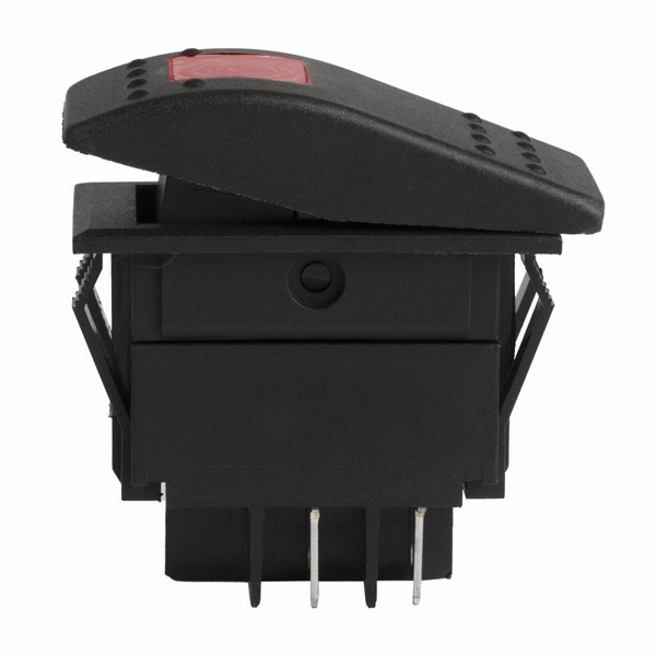 Компактный клавишный выключатель от компании Rexant представляет собой устройство в прямоугольном исполнении с черной клавишей и красной подсветкой, которое предназначено для коммутации электрических цепей постоянного тока напряжением до 12 Вольт. Оно применяется в качестве комплектующего изделия различного электрооборудования. Данный клавишный выключатель имеет два положения с фиксацией: On-Off. Принцип его действия состоит в коммутации контактов клавишей. Номинальный ток, на который рассчитано устройство, составляет 35 Ампер. Материалом изготовления выступает черный пластик. Монтаж производится простым защелкиванием без применения дополнительных инструментов на плоских панелях толщиной от 0.8 до 3 мм. Количество контактных групп – 2, количество контактов в контактной группе – 2. Подключение контактов осуществляется плоской клеммой 6.6 мм, либо с помощью пайки. Контактное сопротивление имеет не более 35 мОм. Механическая износостойкость переключателя составляет 10 000 циклов. Рабочая температура эксплуатации находится в диапазоне от -25 до +85 градусов Цельсия.