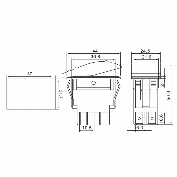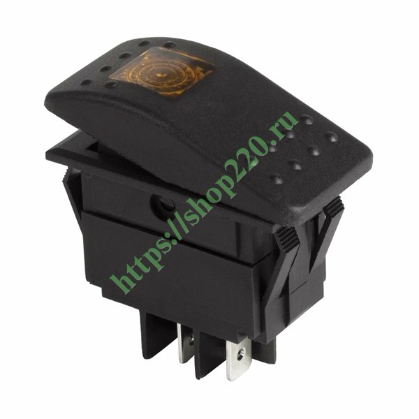 Клавишный выключатель торговой марки Rexant представляет собой прямоугольное устройство на 2 положения с фиксацией: On-Off – которое предназначено для коммутации электрических цепей постоянного тока напряжением до 12 Вольт. Оно сделано из пластика в черном исполнении и обладает желтой световой индикацией коммутационной позиции, чем обеспечивает удобство контроля за работой устройства. Переключатель с клавишей применяется в качестве комплектующего изделия в автомобилях, аудио-оборудовании, различных бытовых приборах. Принцип его действия основан на замыкании и размыкании контактов в электрической цепи. Нагрузка тока для этого устройства составляет 35 Ампер. Его монтаж осуществляется без применения винтов на плоских панелях толщиной от 0.8 до 3 мм. Количество контактных групп – 2, количество контактов в контактной группе – 2. Подключение контактов допустимо как плоской клеммой 6.6 мм, так и с помощью пайки. Контактное сопротивление имеет не более 35 мОм. Механическая износостойкость пластикового переключателя составляет 10 000 циклов. Рабочая температура эксплуатации находится в диапазоне от -25 до +85 градусов Цельсия.