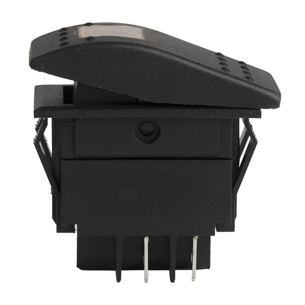 Клавишный выключатель от компании Rexant представляет собой компактное устройство, которое предназначено для коммутации электрических цепей переменного тока напряжением до 250 Вольт. Оно применяется в качестве комплектующего изделия различного электрооборудования: в сетевых фильтрах и удлинителях, аудио-оборудовании и т.п. С его помощью допустимо управление одной двухполюсной линией. Данный клавишный переключатель сделан из пластмассы в черном цвете и оснащен клавишей, которая имеет желтую подсветку и два положения с фиксацией: On/Off. Принцип действия устройства основан на замыкании и размыкании контактов клавишей. Монтаж осуществляется без применения винтов и производится на плоских панелях толщиной от 0.8 до 3 мм. Количество контактных групп – 2, количество контактов в контактной группе – 2. Подключение контактов осуществляется плоской клеммой, либо с помощью пайки. Механическая износостойкость выключателя составляет 10 000 циклов. Рабочая температура эксплуатации находится в диапазоне от -25 до +85 градусов Цельсия.