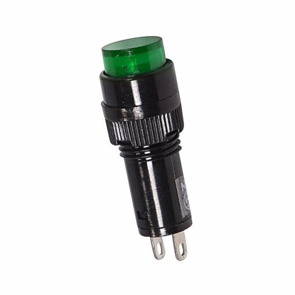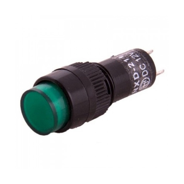 Индикатор светосигнальный компании Rexant предназначен для визуального контроля за работой электрических цепей постоянного тока с номинальным напряжением 12 Вольт. Данная модель имеет цилиндрическую форму и состоит из двух основных частей: лицевой и контактной. Лицевая часть имеет круглую плоскую линзу зеленого цвета и светодиодную лампу в качестве светоизлучающего элемента. Лампа LED поставляется в комплекте. Диаметр установочного отверстия устройства равен 10.2 мм. Монтаж индикатора производится с помощью гайки на плоских панелях толщиной от 0.5 до 4 мм. Подключение контактов осуществляется с помощью пайки. Для предотвращения попадания жидкости внутрь механизма индикатора, он снабжен резиновым уплотнительным кольцом. Степень защиты устройства – IP55. Рабочая температура эксплуатации составляет от -20 до +50 градусов Цельсия. Допустимая влажность: до 85%, без выпадения конденсата. Светосигнальный индикатор позволяет визуально контролировать режимы работы электрооборудования.
