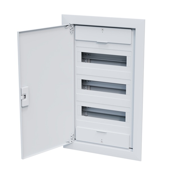 Пластиковый трехрядный распределительный шкаф на 36 модулей скрытой установки с белой дверью 379804