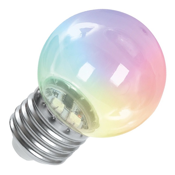 Светодиодная энергосберегающая лампочка для декоративного освещения, мощностью 1 Ватт, с цоколем E27, RGB свечение, матовая колба 38116