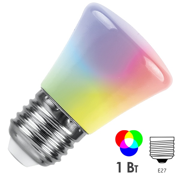 Декоративная светодиодная лампочка матовая формы колокольчик Ферон LB-372, 1Вт, цвет свечения RGB 38117