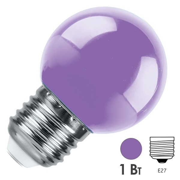 Светодиодная энергосберегающая лампочка для декоративного освещения, мощностью 1 Ватт, с цоколем E27, фиолетовое свечение, матовая колба 38125