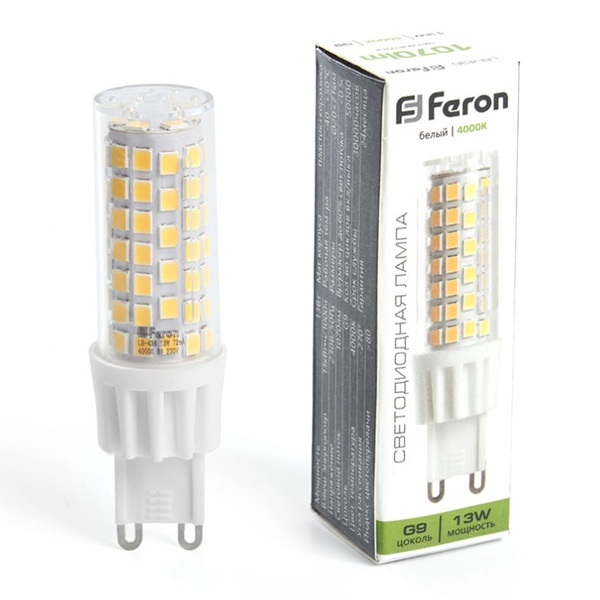 Лампа светодиодная капсула Feron LB-436 13W 4000K 230V G9 керамика холодный свет 38153