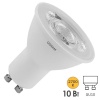 Лампа светодиодная FERON LB-1610, MR16 (рефлекторная), 10W 230V GU10 2700К (белый теплый), рассеиватель матовый белый, 840Lm, угол рассеивания 120, 57*50мм