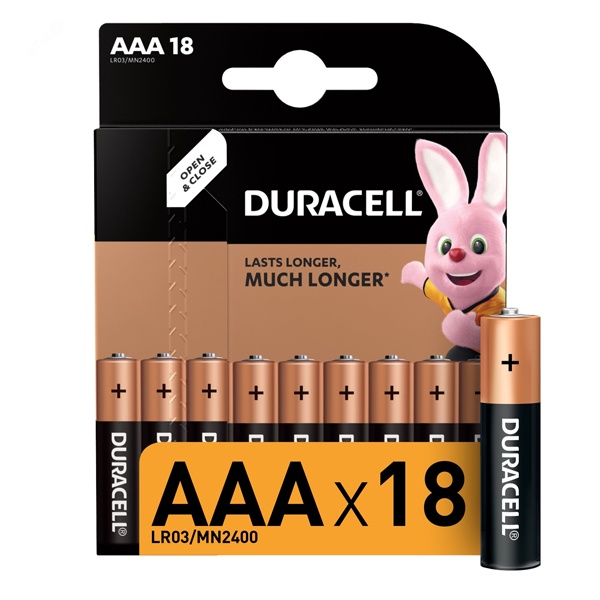 • Батарейка AAA Duracell LR03 BASIC MN2400 (упаковка 18шт) 107557
