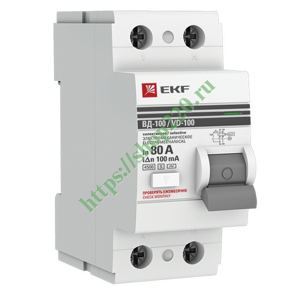 Устройство защитного отключения УЗО ВД-100 2P 80А/100мА (электромеханическое) АС EKF PROxima (ВДТ) elcb-2-80-100-em-prо