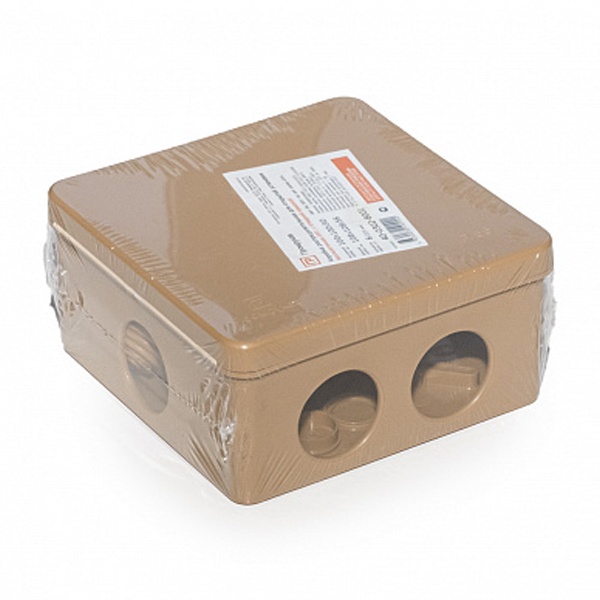 Пластиковая распаячная квадратная коробка безгалогенная,в едином корпусе цвета бук, размером 100*100 мм 40-0302-8001