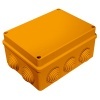 Коробка распределительная огнезащитная входит в состав огнестойких кабельных линий компании Промрукав и представляет собой пластиковый бокс оранжевого цвета, который оснащен крышкой и 6 вводами для кабелей. Он используется при прокладке систем противопожарной безопасности по стенам и потолкам зданий. Конструкция из двух стальных пластин позволяет надежно крепить его к поверхности. Основное назначение коробки состоит в механической защите мест соединения проводов и кабелей, а также для предотвращения попадания пыли, влаги и посторонних предметов внутрь. Она имеет открытый тип установки, поэтому обладает надежной степенью защиты IP55. Мембранные сальники на вводах с диаметром 25 мм служат для герметичности подвода проводов. Коробка имеет 8 полюсов на 4 керамических колодках для проводов сечением до 1.5 мм2. Ее установка допустима в сетях с рабочим напряжением до 750 Вольт. Материалом коробки является безгалогенный полимер, который имеет высокую стойкость к воспламенению от нагретой проволоки. Предел огнестойкости составляет Е15-Е120, что означает время работы линии в условиях пожара, необходимого для эвакуации людей в безопасную зону. Размеры коробки: 150х110х70 мм. Температура эксплуатации: -25 до 40 градусов Цельсия.