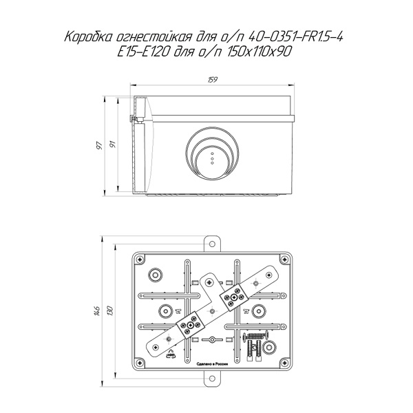 Монтажная коробка серии 40-0351-FR от известной компании Промрукав представляет собой оранжевый огнеупорный бокс с крышкой на 4 ввода, который применяется при прокладке систем противопожарной безопасности по стенам, потолкам зданий и сооружений. Он обладает открытым типом установки, поэтому обладает степенью защиты IP42. Диаметр кабельных отверстий составляет 25 мм. Основное назначение коробки состоит в механической защите мест соединения проводов и кабелей, а также для защиты внутреннего пространства от попадания пыли, влаги и посторонних предметов. Конструкция из двух стальных пластин позволяет надежно крепить ее к поверхности стен и потолка. Материалом изготовления корпуса и крышки служит термостойкий полимер без галогенов, имеющий высокую устойчивость к воспламенению от нагретой проволоки до 650 градусов Цельсия. Предел огнестойкости находится в диапазоне E15-E120. Максимальное сечение подключаемых проводов составляет 1.5 мм2. Коробка имеет 4 полюса на 2 керамических колодках и обладает следующими размерами: 150х110х90 мм. Она рассчитана на установку в сетях с применением огнестойких кабелей серии FR с рабочим напряжением до 750 Вольт и выдерживает температуру эксплуатации от -25 до 40 градусов Цельсия. В комплект поставки входит крепеж и инструкция по монтажу.
