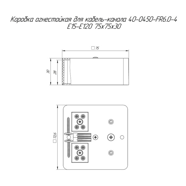 Монтажная коробка серии 40-0450-FR от известной компании Промрукав представляет собой белый огнеупорный бокс с гладкими стенками, который применяется при прокладке систем противопожарной безопасности по стенам и потолкам зданий. Он используется при прокладке кабель-канала и обладает степенью защиты IP42. Его основание в виде стальной пластины надежно крепится к поверхности стен и потолка, а защитная крышка затягивается винтом по центру конструкции. Основное назначение такой коробки состоит в механической защите мест соединения проводов и кабелей, а также для защиты внутреннего пространства от попадания пыли, влаги и посторонних предметов. Материалом изготовления корпуса служит термостойкий полимер, имеющий высокую устойчивость к воспламенению от нагретой проволоки до 650 градусов Цельсия, который, в свою очередь, не содержит галогенов и является безвредным для человека. Предел огнестойкости находится в диапазоне E15-E120. Максимальное сечение подключаемых проводов составляет 6 мм2. Компактная коробка имеет 4 полюса на 2 керамических колодках и обладает следующими габаритами: 75х75х30 мм. Она рассчитана на установку в сетях с применением огнестойких кабелей серии FR с рабочим напряжением до 750 Вольт и выдерживает температуру эксплуатации от -25 до 40 градусов Цельсия. В комплект поставки входит необходимый крепеж и инструкция по монтажу.