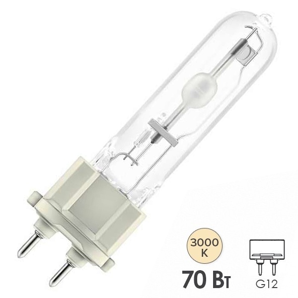 Добрый день, Ксения.Можем предложить лампу нейтрального белого света:Лампа металлогалогенная Osram HCI-T 70W/942 NDL POWERBALL G12 (МГЛ) - Артикул: 4008321678522Средний срок службы: 15 000 ч (при работе с ЭПРАСредний срок службы: 12 000 ч (при работе с электромагнитным балластом)
