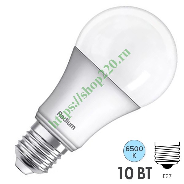 Светодиодная лампа классическая формы груши, Радиум RL A60 10W (75W), холодный свет 4008597191640