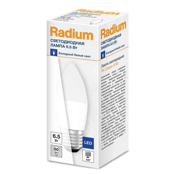 Характеристики:- Мощность: 6.5 Вт (эквивалент мощности 60 Вт)