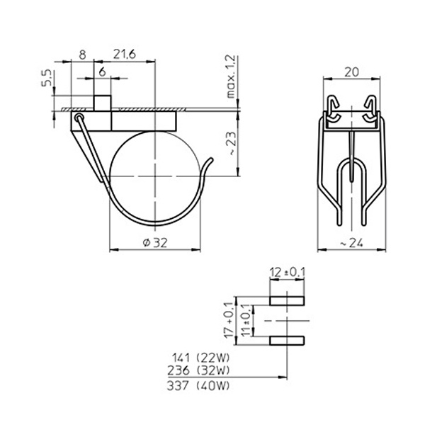 Клипса на защёлках для крепления кольцевых люминесцентных ламп с цоколем G10q. 101532