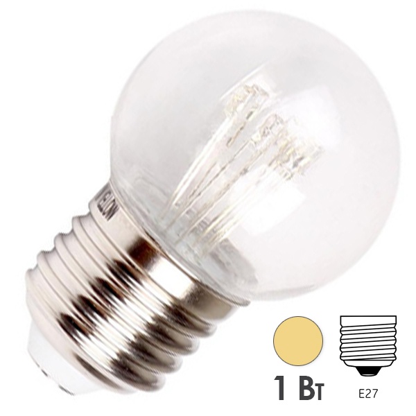 Декоративная светодиодная лампочка шарик для гирлянд белт лайт, мощностью 1 Ватт, с цоколем E27, прозрачная колба, светодиоды желтого цвета 405-121