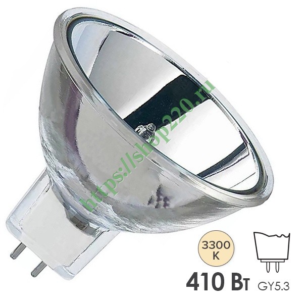 Данная лампа от известного мирового производителя светотехнической продукции Osram относится к серии низковольтных галогенных источников света специального назначения. Она представляет собой компактную модель с отражателем MR16 и подходит для широкой области применения: медицинской сферы, лабораторного оборудования других отраслей промышленности, а также в качестве создания световых эффектов на сцене. Галогенная лампа обладает мощностью 410 Ватт и рассчитана на сетевое напряжение 82 Вольта. Она имеет тип цоколя GY5.3 и дихроичное покрытие рефлектора. Лампа характеризуется надежностью, высокой светоотдачей и отличной цветопередачей на протяжении всего срока службы, который составляет 75 часов.