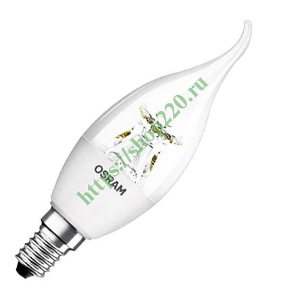 Лампа светодиодная свеча на ветру Osram LED CLAS BA CL 6W (40W) 827 DIM 470lm 220V E14