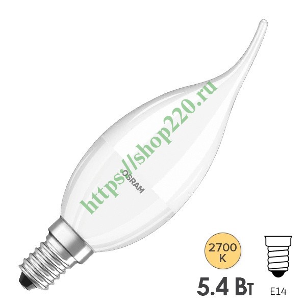 Диммируемая светодиодная лампа свеча на ветру Осрам мощностью 5,4 Ватт на 220 Вольт с цоколем E14 4052899288645