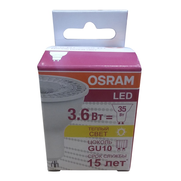 4052899971691 Лампа светодиодная Osram LED PAR16 35 3,6W/830 36° 230lm 220V GU10 фото 2