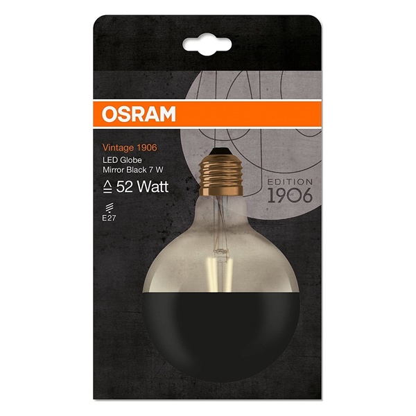 • Лампа светодиодная шар Osram Globe125 Vintage 1906 CL Mirror B 7W 2700K E27 178x125mm черный матовый