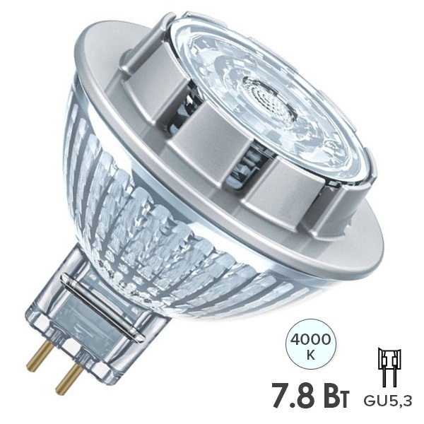 Лампа светодиодная Osram LED PARATHOM MR16 50 7,8W/4000K 12V 36° DIM GU5.3 561Lm 4058075095083