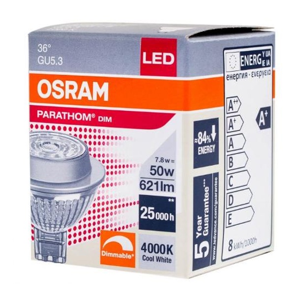 • Лампа светодиодная Osram LED PARATHOM MR16 50 7,8W/4000K 12V 36° DIM GU5.3 561Lm