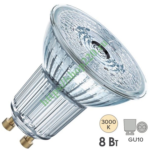 Лампа светодиодная Osram LED 1-PARATHOM PAR16 80 8W/830 DIM 60° 230V GU10 575lm d50x58mm 4058075095526