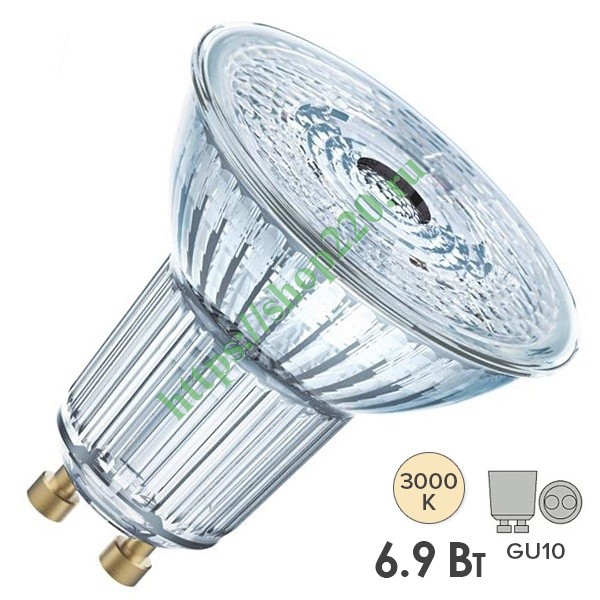 Светодиодная лампочка Осрам акцентного освещения 60°, мощностью 6,9 Ватт, с цоколем GU10, теплый белый свет 4058075096769