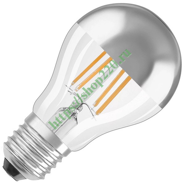 Светодиодная лампа грушевидной формы с зеркальным отражателем Осрам CL A FIL Mirror Silver 51, теплый свет 4058075114593