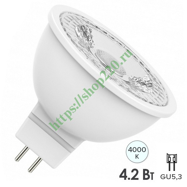 Лампа светодиодная Osram LED ST MR16 50 4,2W/840 110° 220V 380lm GU5.3 4058075129092